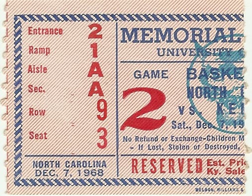 Basketball Tickets — 1960’s