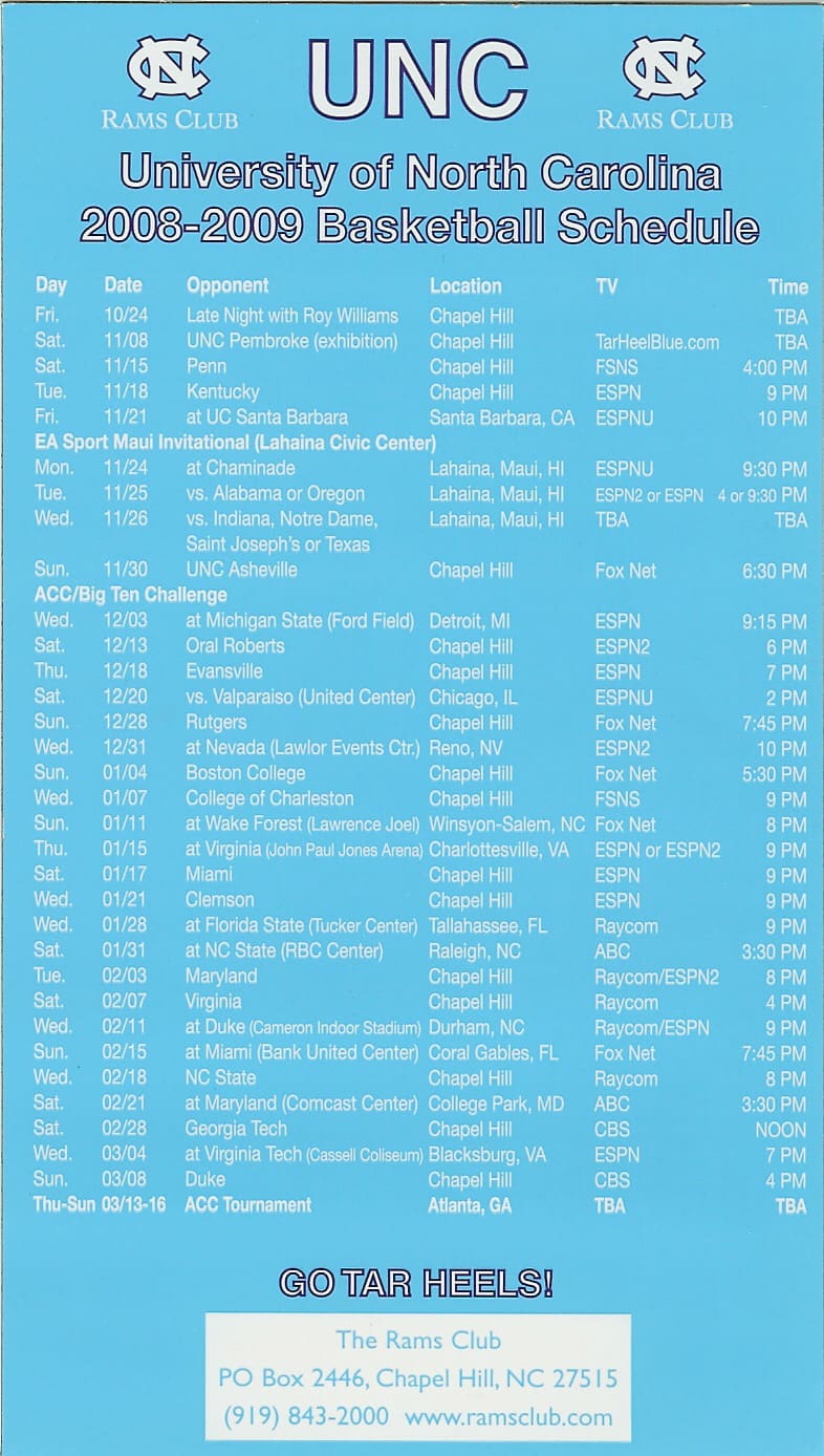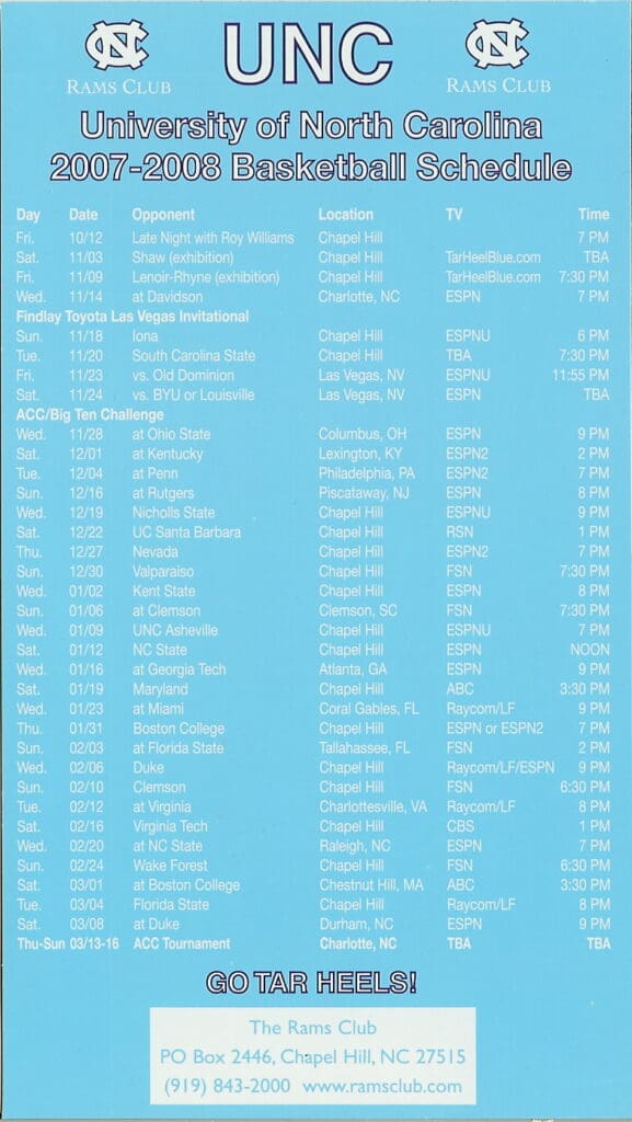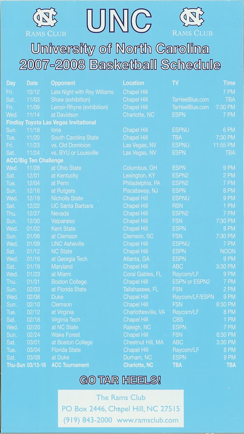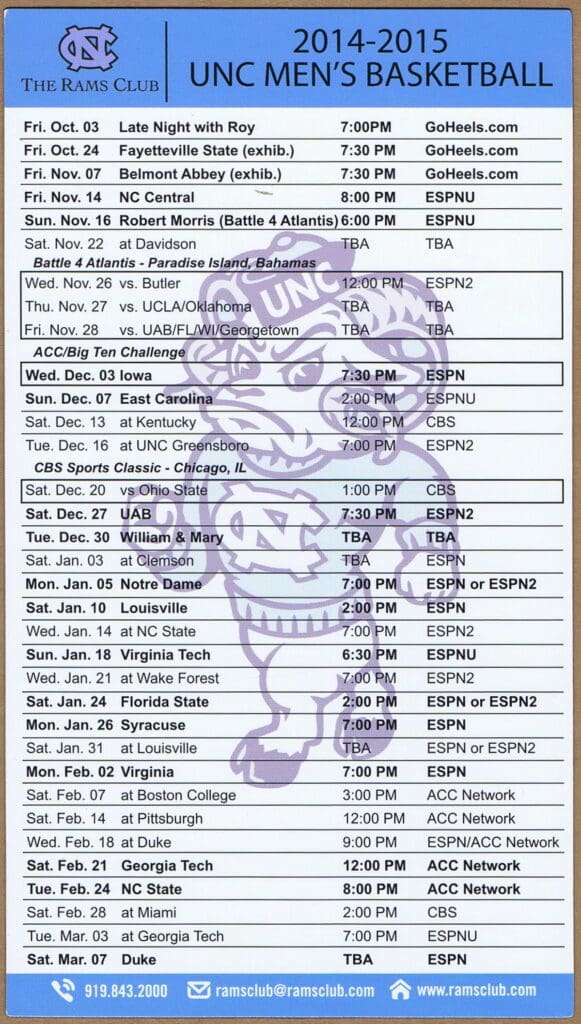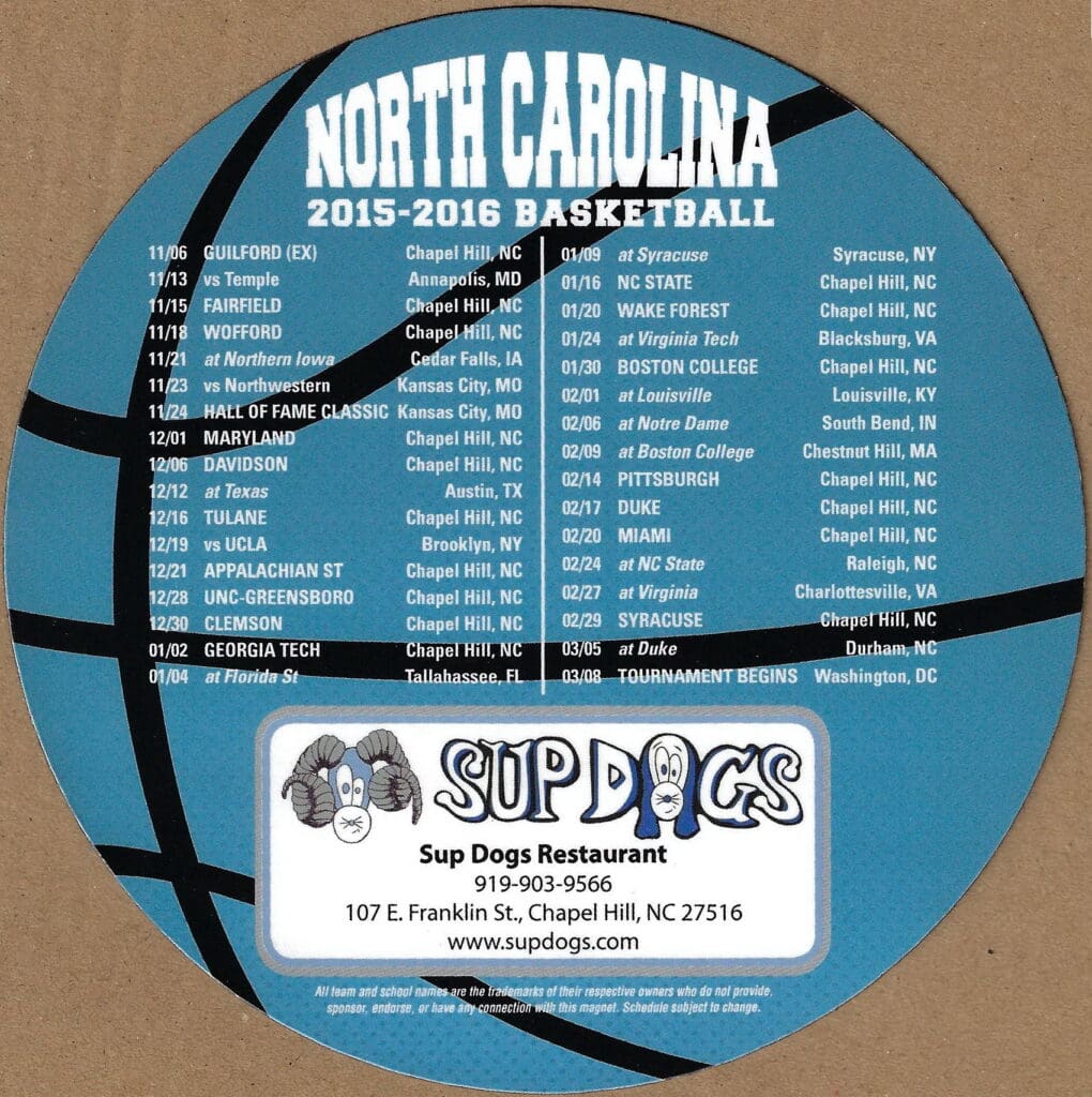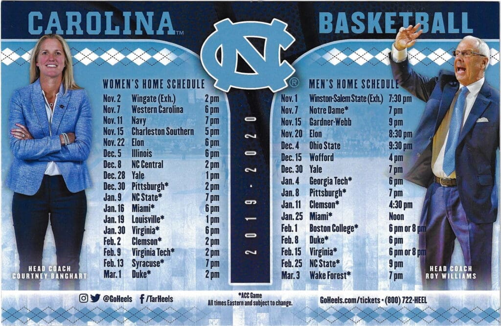 2019-20 UNC Men’s & Women’s BBall Magnet Schedule