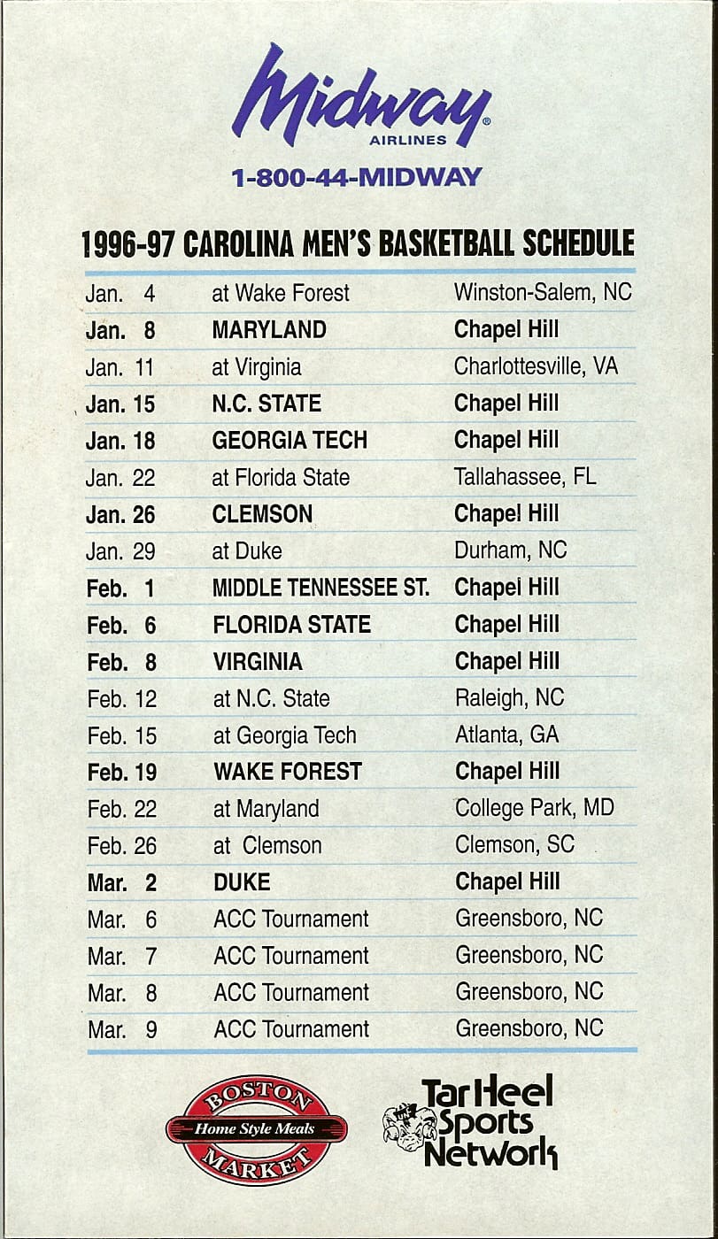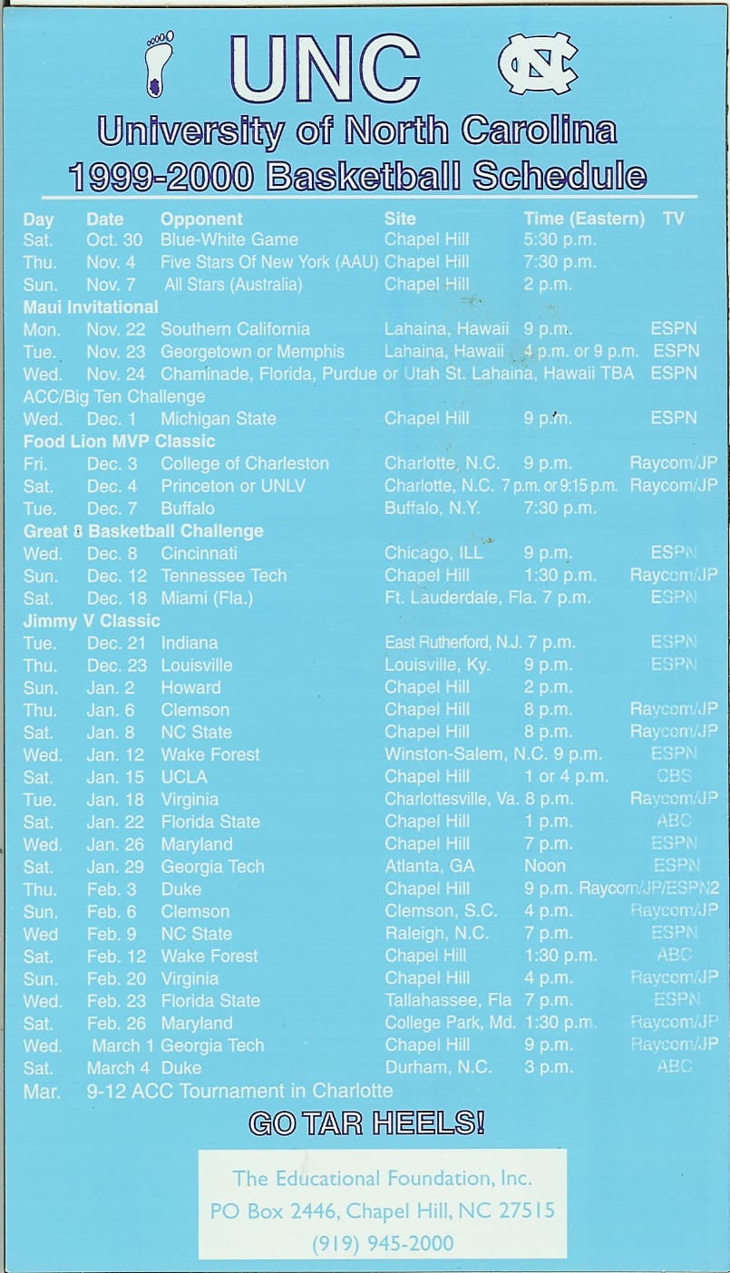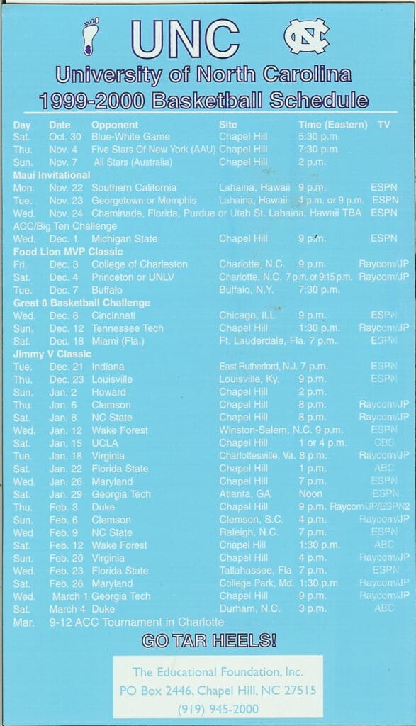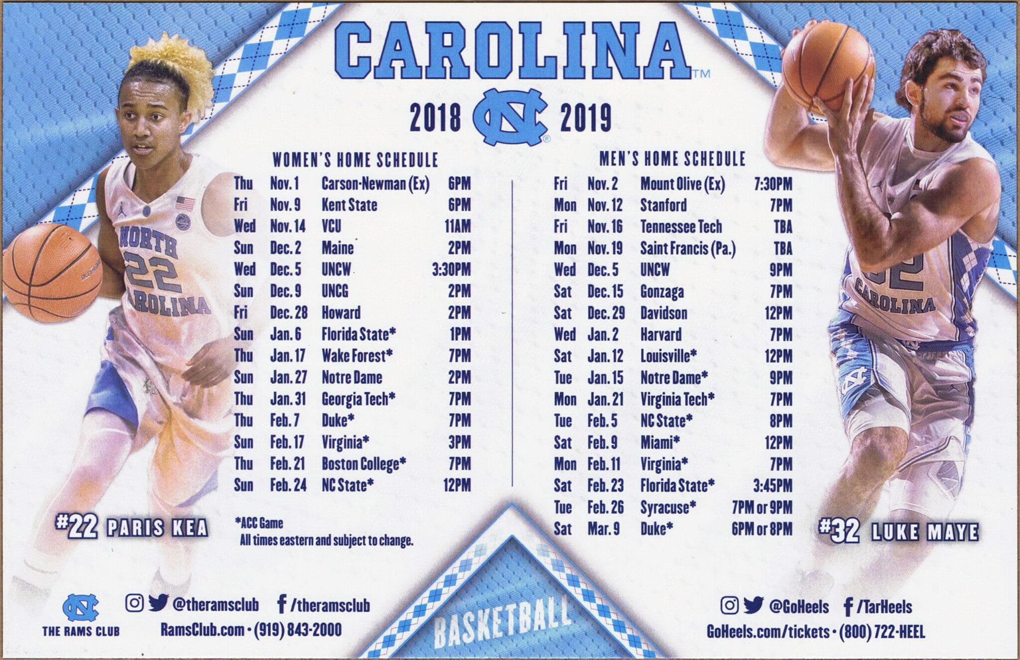 2019-20 UNC Men’s & Women’s BBall Magnet Schedule