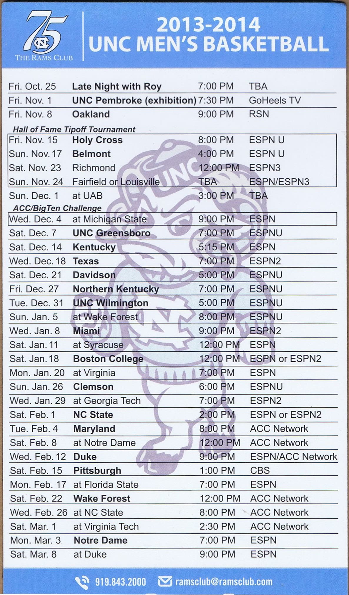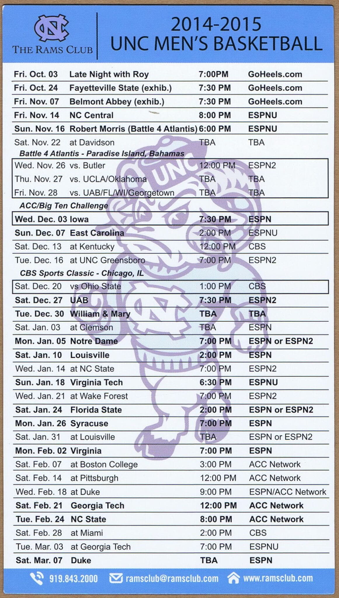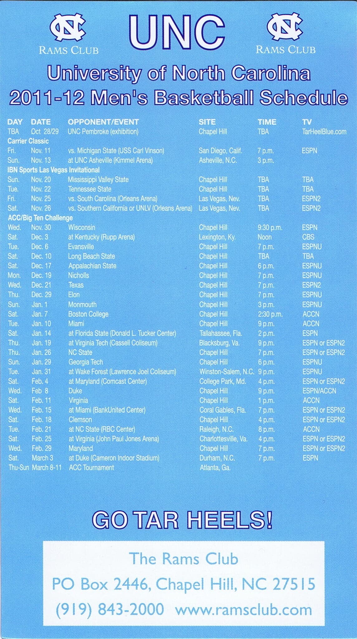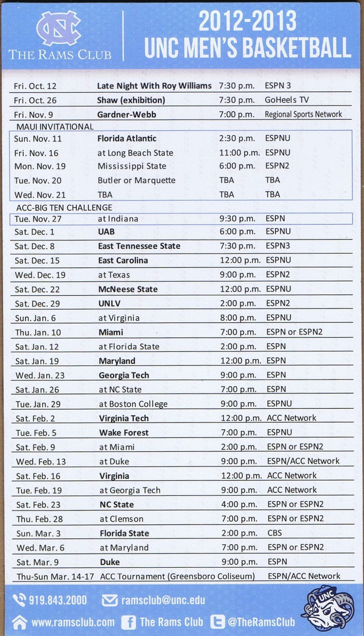 2019-20 UNC Men’s & Women’s BBall Magnet Schedule