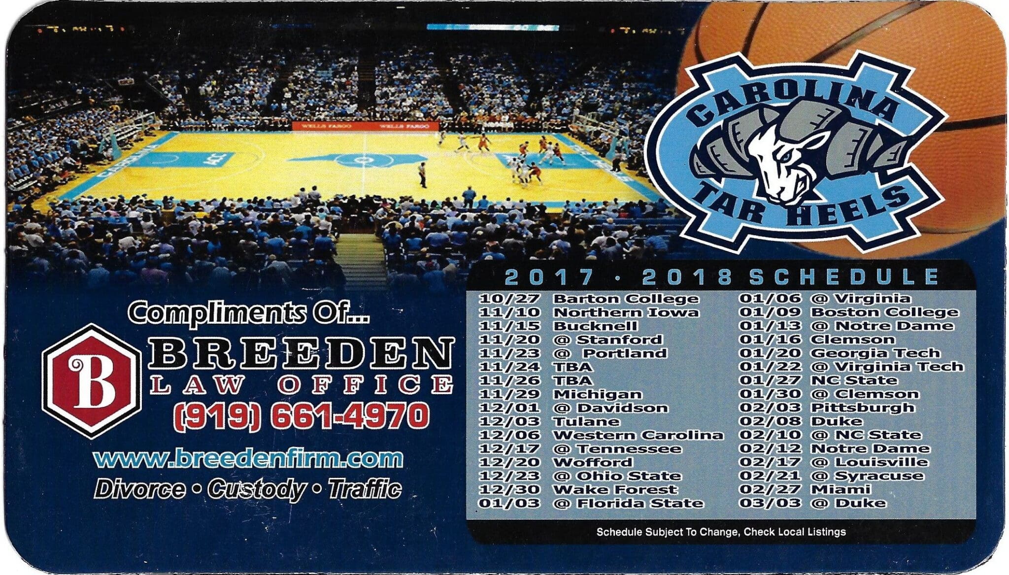 2017-18 Basketball Schedule Magnet Breeden Law Office